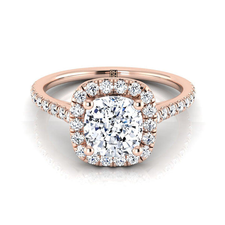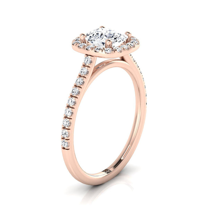 14K Rose Gold Cushion Diamond Pave Halo Engagement Ring -1/3ctw