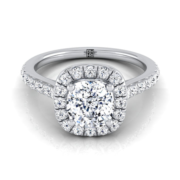Classic With A Bold Twist, This Cushion Cut Diamond Halo With A Pave Shank Ring Showcases Brilliant Cut Diamonds (h-i/vs 0.50ctw) Beautifully Set In A Classic 14k White Gold Setting.