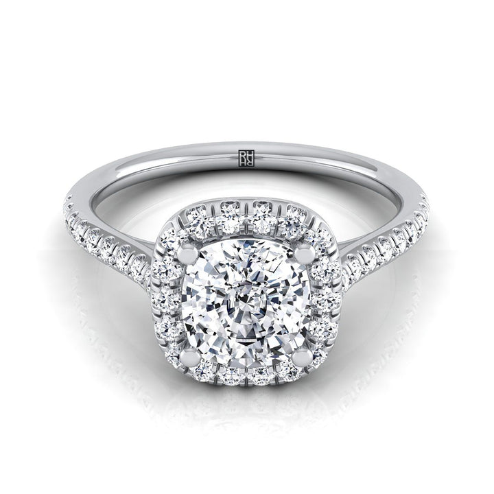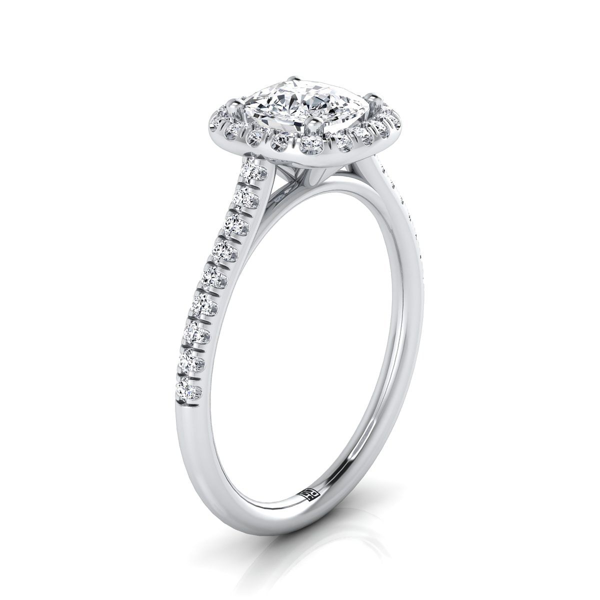 An Elegant Statement Of Style, This Cushion Cut Halo Engagement Ring With Diamond Pave Shank Showcases Brilliant Cut Diamonds (h-i/vs 0.33ctw) Beautifully Set In A Classic 14k White Gold Setting.