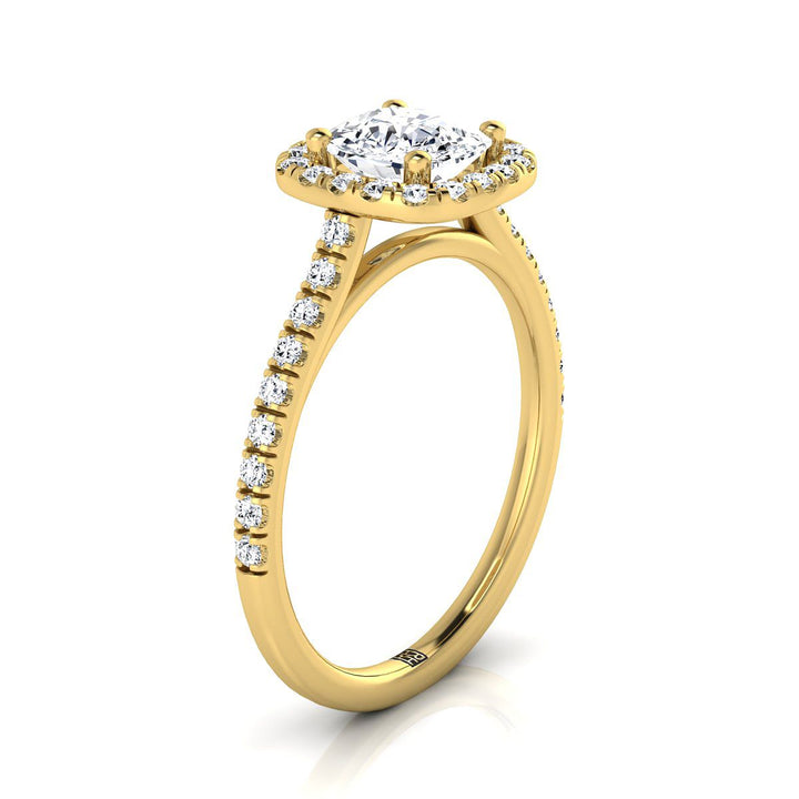14K Yellow Gold Cushion Diamond Pave Halo Engagement Ring -1/3ctw