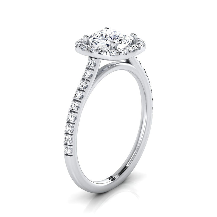 Platinum Cushion Diamond Pave Halo Engagement Ring -1/3ctw