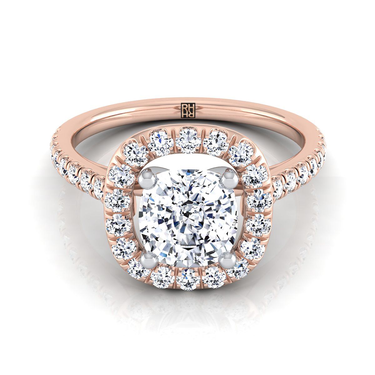 14K Rose Gold Cushion Diamond Simple French Pave Halo Engagement Ring -1/2ctw