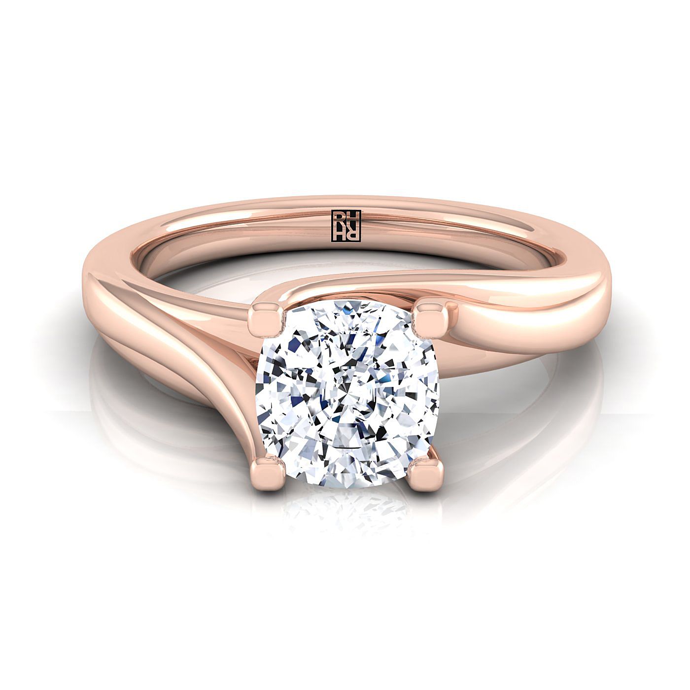 14K Rose Gold Cushion Twisted Bypass Solitaire Engagement Ring