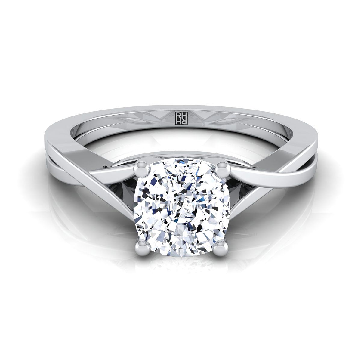 18K White Gold Cushion Delicate Twist Solitaire Engagement Ring