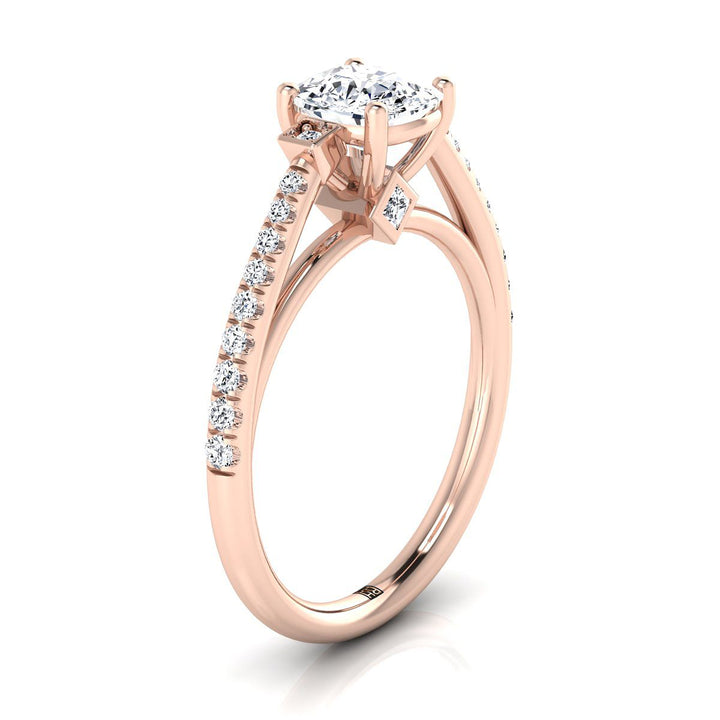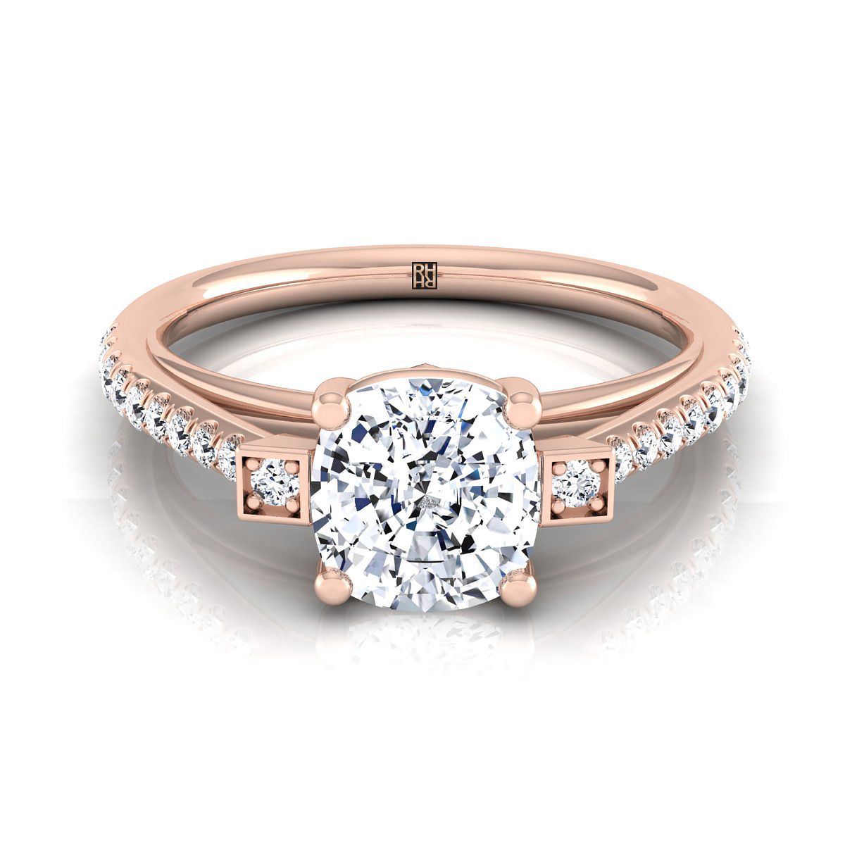 14K Rose Gold Cushion Diamond Delicate Three Stone Pave Engagement Ring -1/3ctw