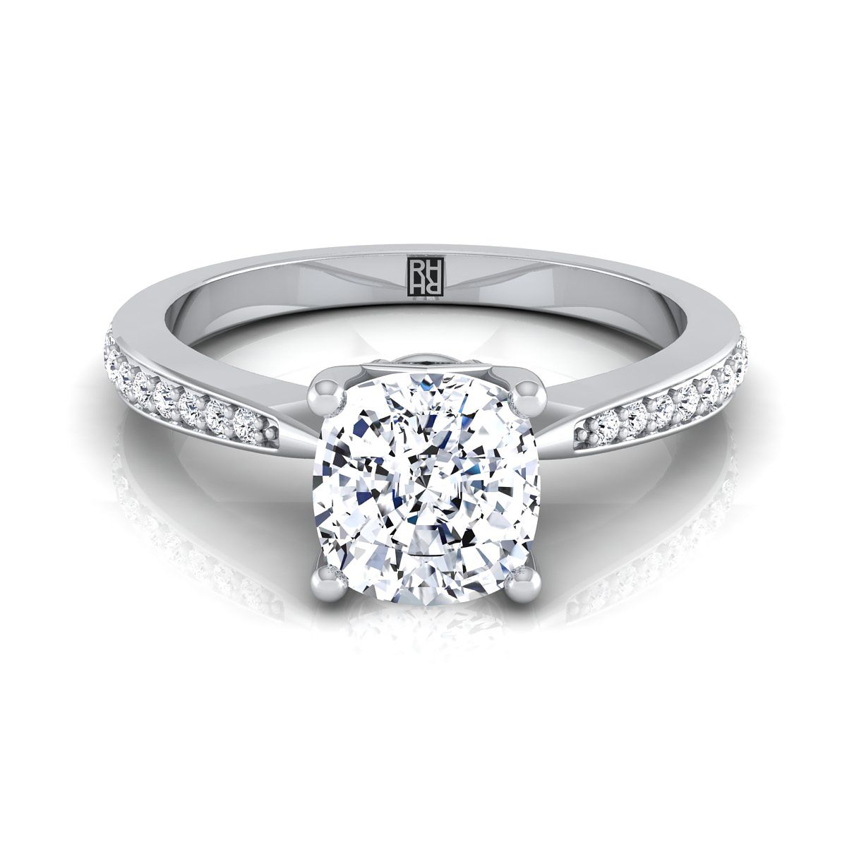 18K White Gold Cushion Diamond Tapered Pave Engagement Ring -1/8ctw