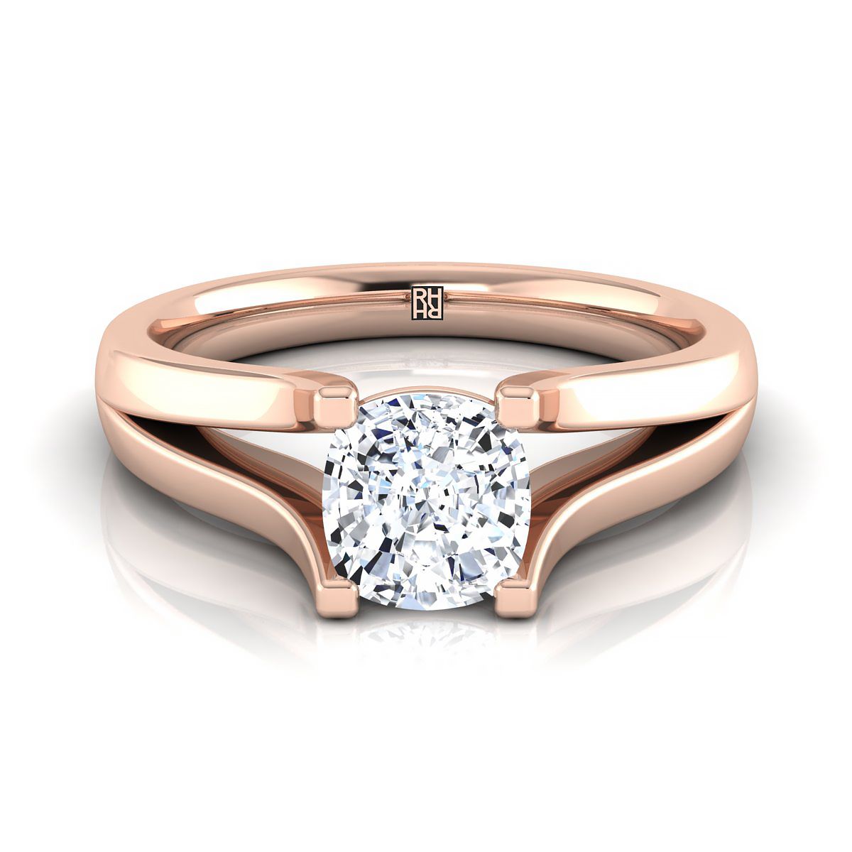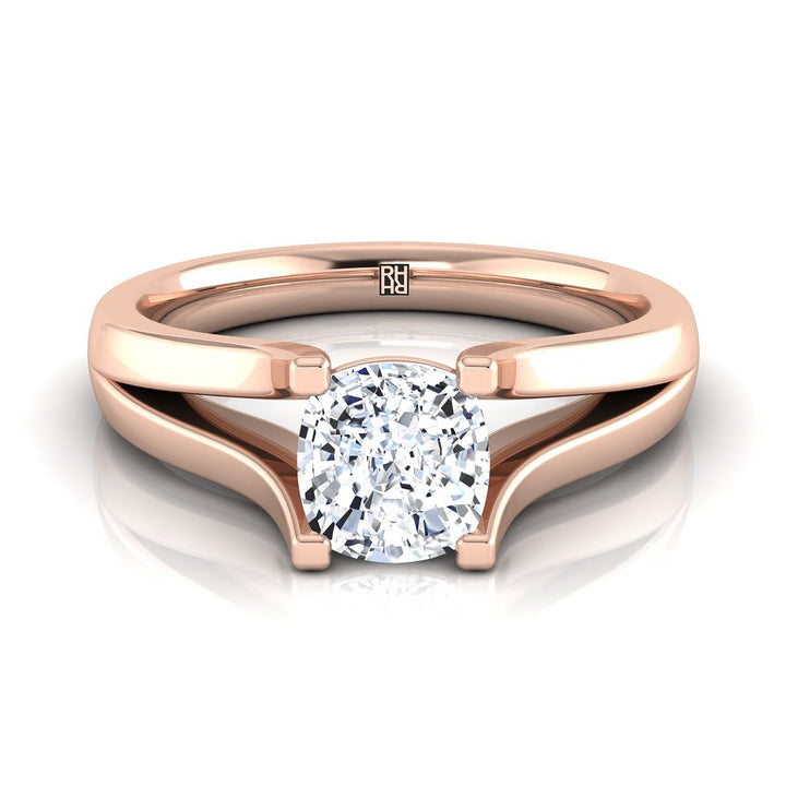 14K Rose Gold Cushion Modern Split Shank Solitaire Engagement Ring