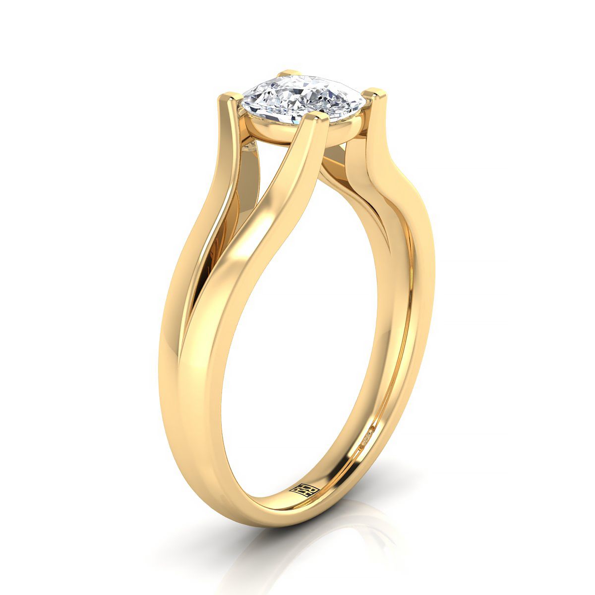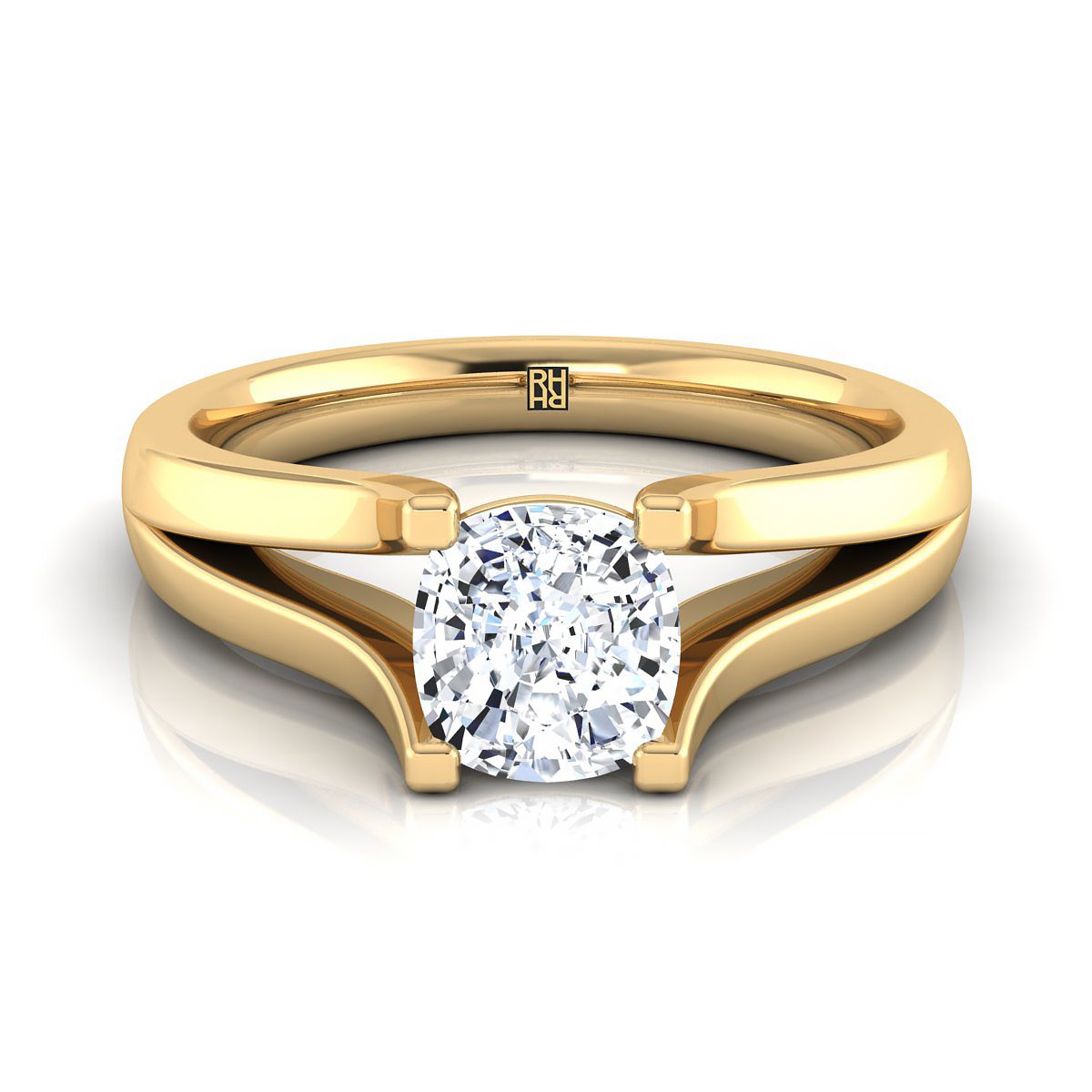 18K Yellow Gold Cushion Modern Split Shank Solitaire Engagement Ring