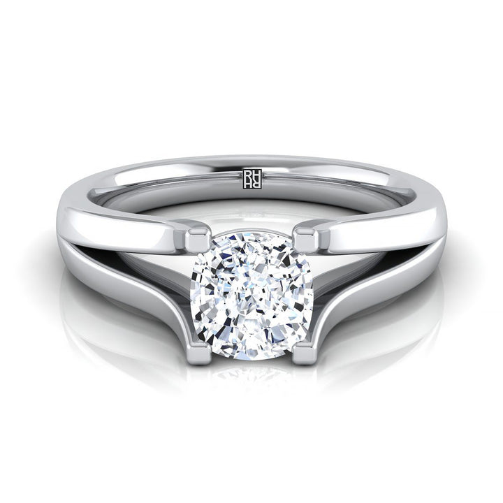 Platinum Cushion Modern Split Shank Solitaire Engagement Ring