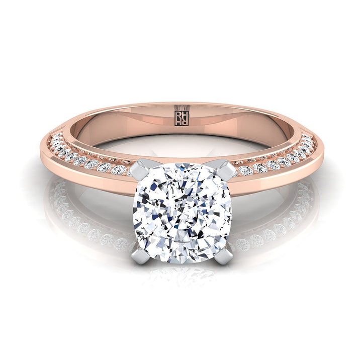 14K Rose Gold Cushion Diamond Knife Edge Micropave Engagement Ring -1/5ctw