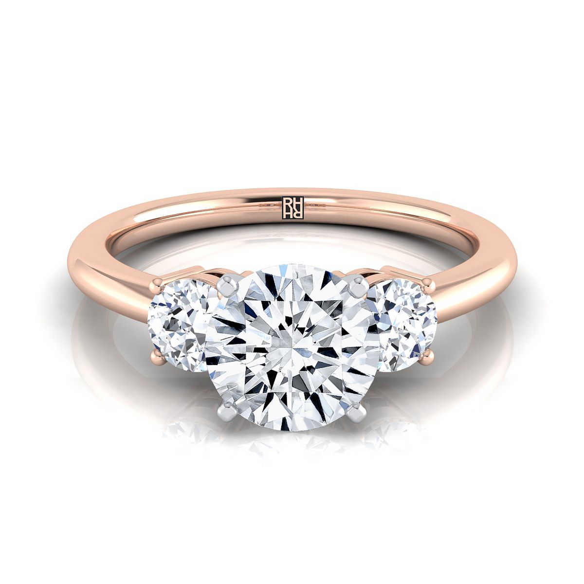 Understated Elegance, This 3 Stone Diamond Engagement Ring Setting Showcases Brilliant Cut Diamonds (h-i/vs 0.25ctw) Exquisitely Prong Set In 14k Rose Gold. Center Setting Is In 14k White Gold.