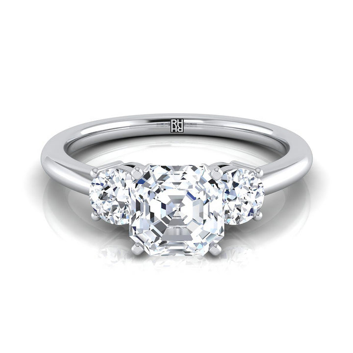Understated Elegance, This 3 Stone Diamond Engagement Ring Setting Showcases An Asscher Cut Center And Round Brilliant Side Stones (h-i/vs 0.25ctw) Exquisitely Prong Set In 18k White Gold