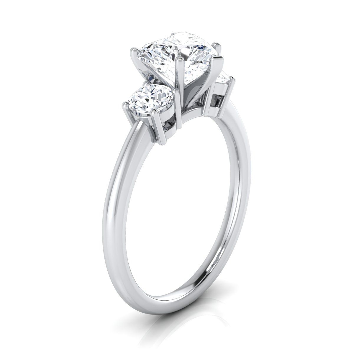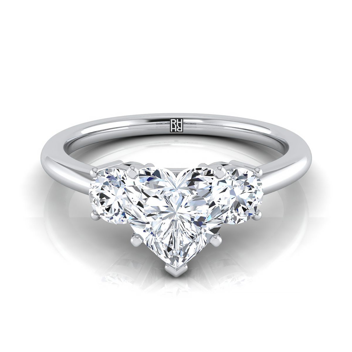 18K White Gold Heart Shape Center Diamond Perfectly Matched Round Three Stone Diamond Engagement Ring -1/4ctw