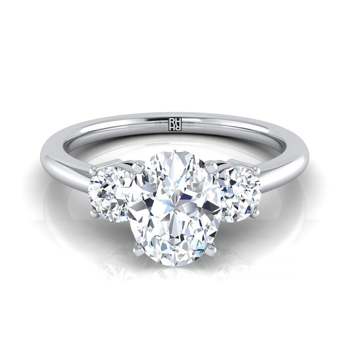Understated Elegance, This 3 Stone Diamond Engagement Ring Setting Showcases An Oval Shape Center And Round Brilliant Side Stones (h-i/vs 0.25ctw) Exquisitely Prong Set In 14k White Gold