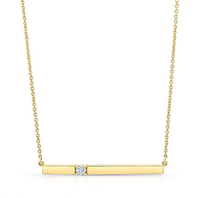 14kyg 0.10ct Round Brilliant Diamond I/vs2 Bar Necklace Min 0.10ctw
