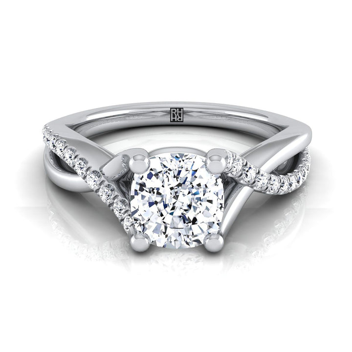 14K White Gold Cushion Bypass Pave Diamond Twist Engagement Ring -1/6ctw