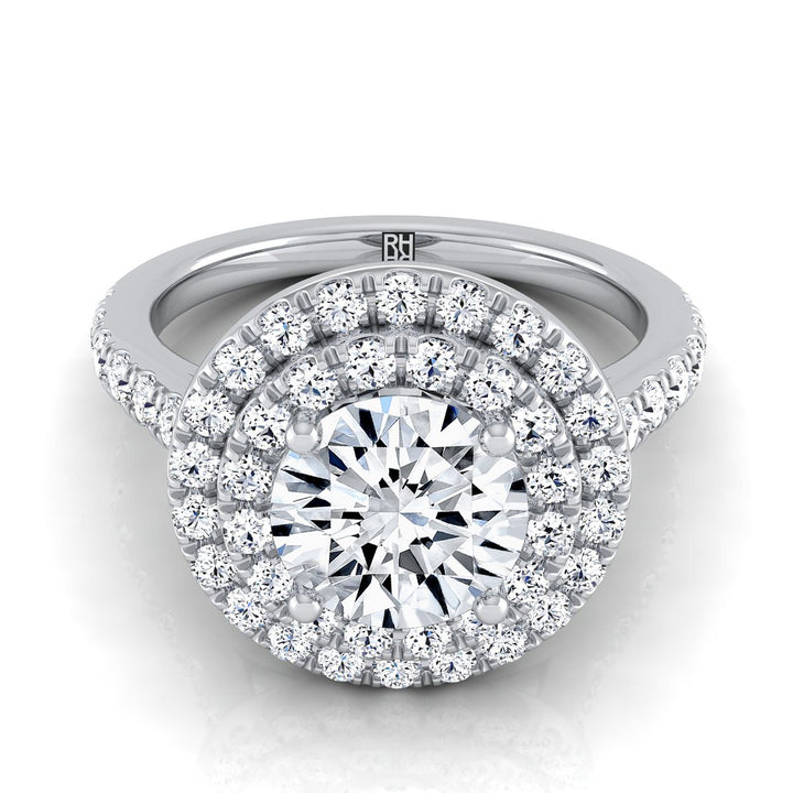 Exquisitely Handcrafted, This Double Pave Halo Engagement Ring Showcases Brilliant Cut Diamonds (h-i/vs 0.75 Ctw) Beautifully Pave Set In A Classic Platinum Setting.