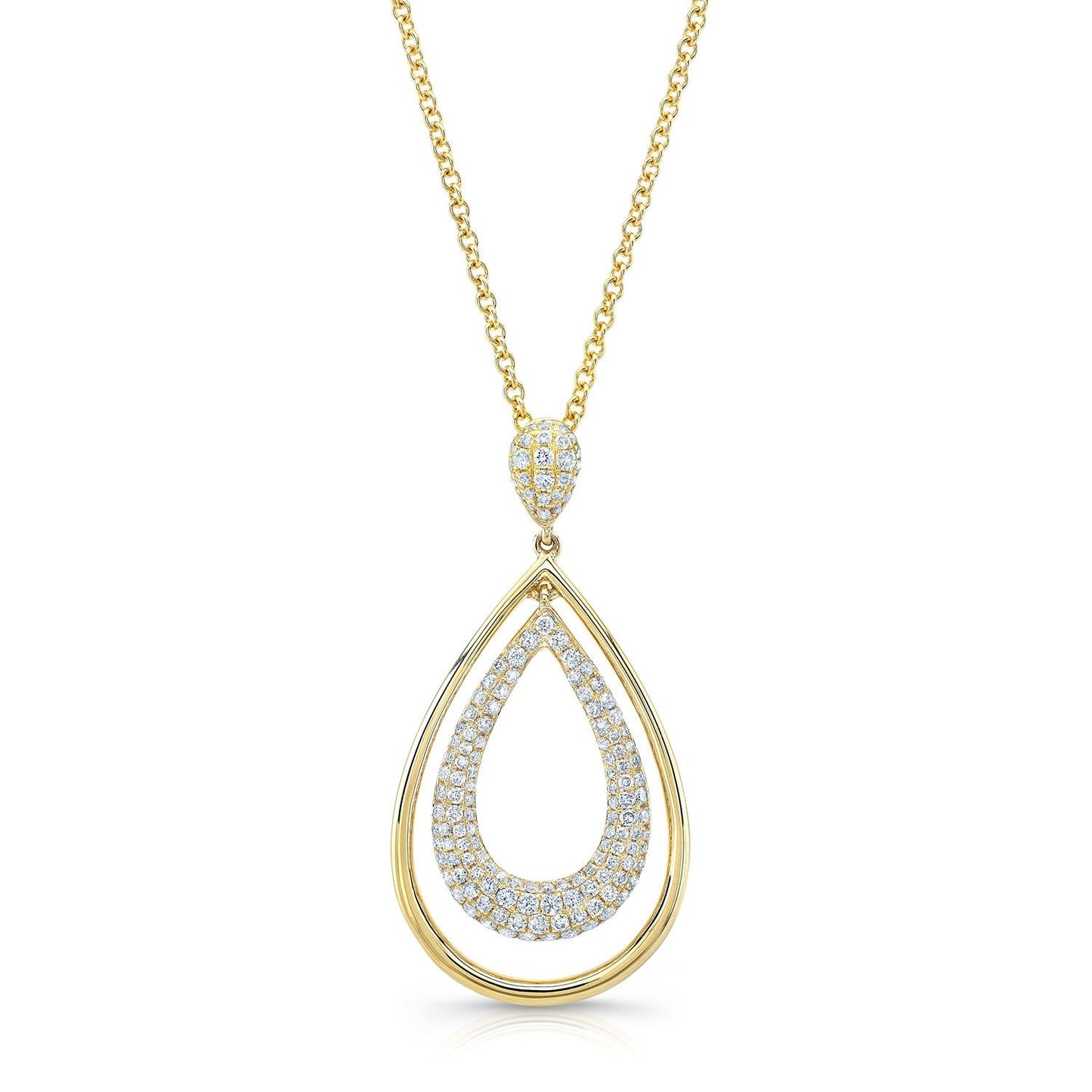 Diamond Double Oval Pendant In 14k Yellow Gold 18 Inch Length