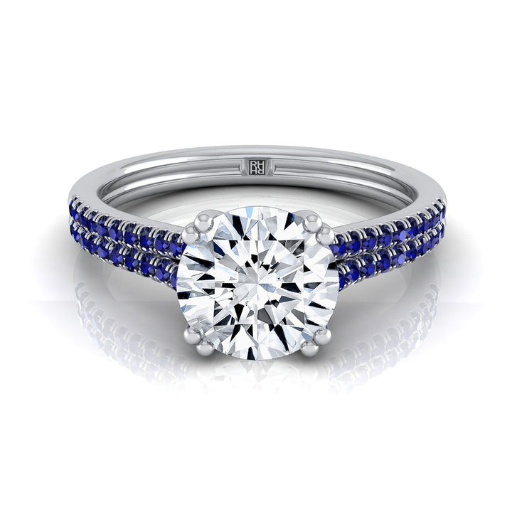 Exquisitely Handcrafted, This Engagement Ring Showcases Round Sapphires Beautifully Micro U Pave Set In A Classic 14k White Gold Setting.