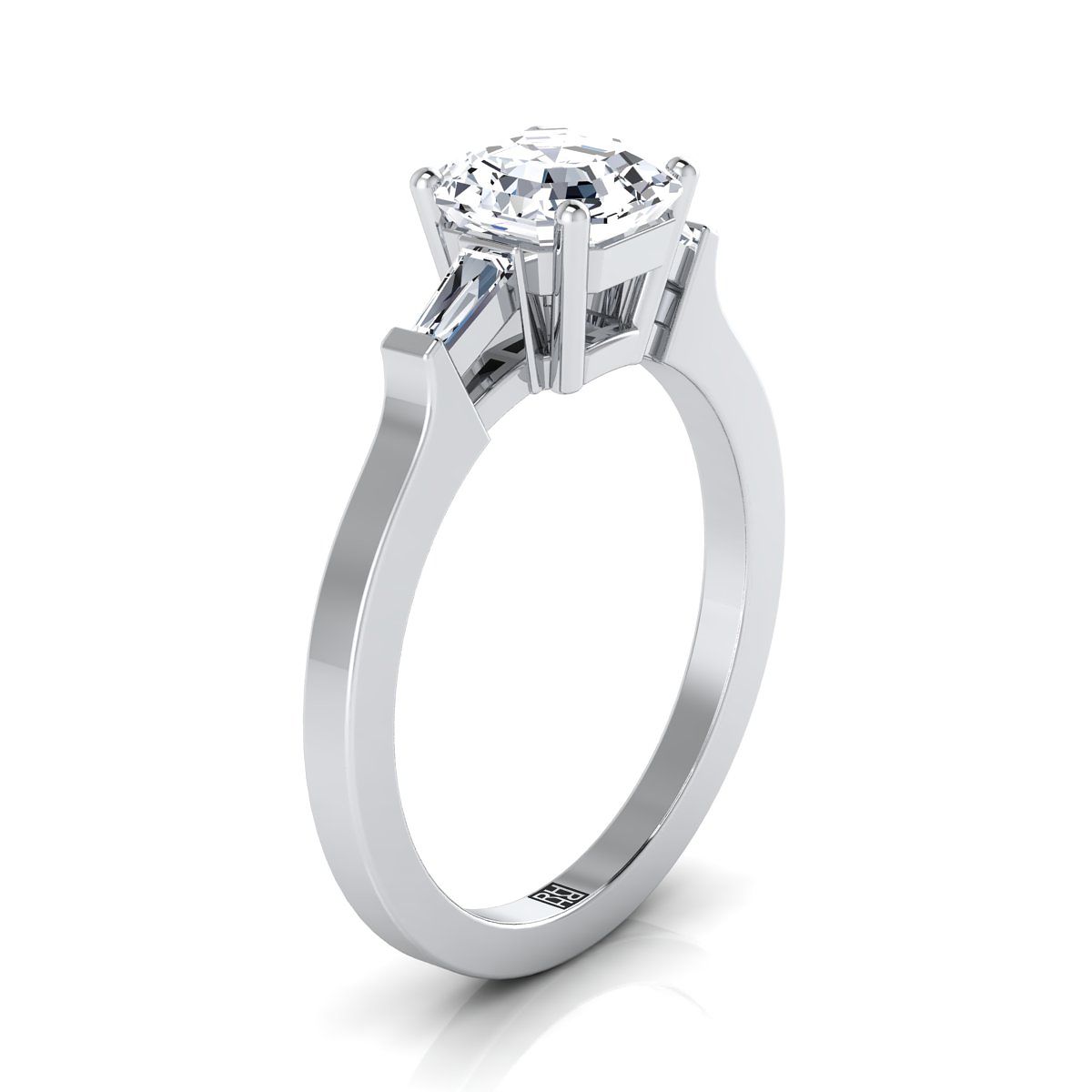 18K White Gold Asscher Cut Diamond Tapered Baguette Accent Engagement Ring -1/4ctw