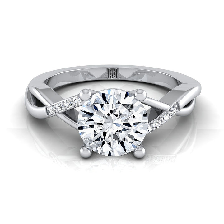 18K White Gold Round Brilliant Diamond Criss Cross Twist Engagement Ring