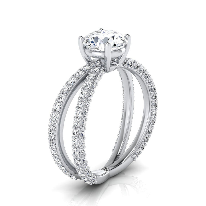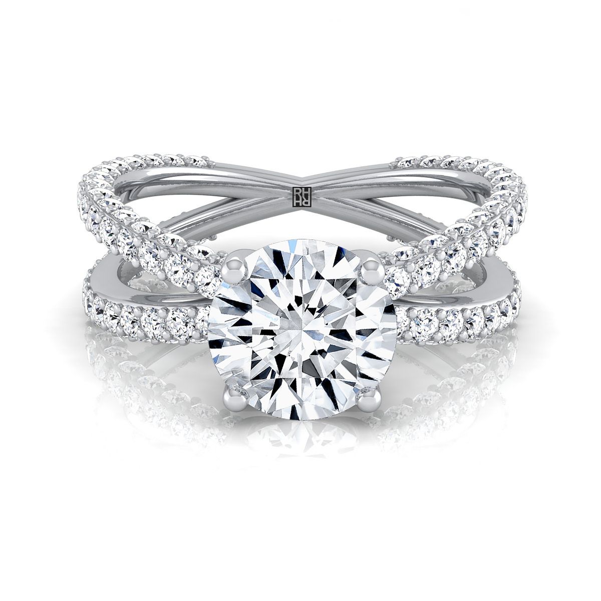 14K White Gold Round Brilliant Open Diamond Pave Criss Cross Engagement Ring -1-1/3ctw