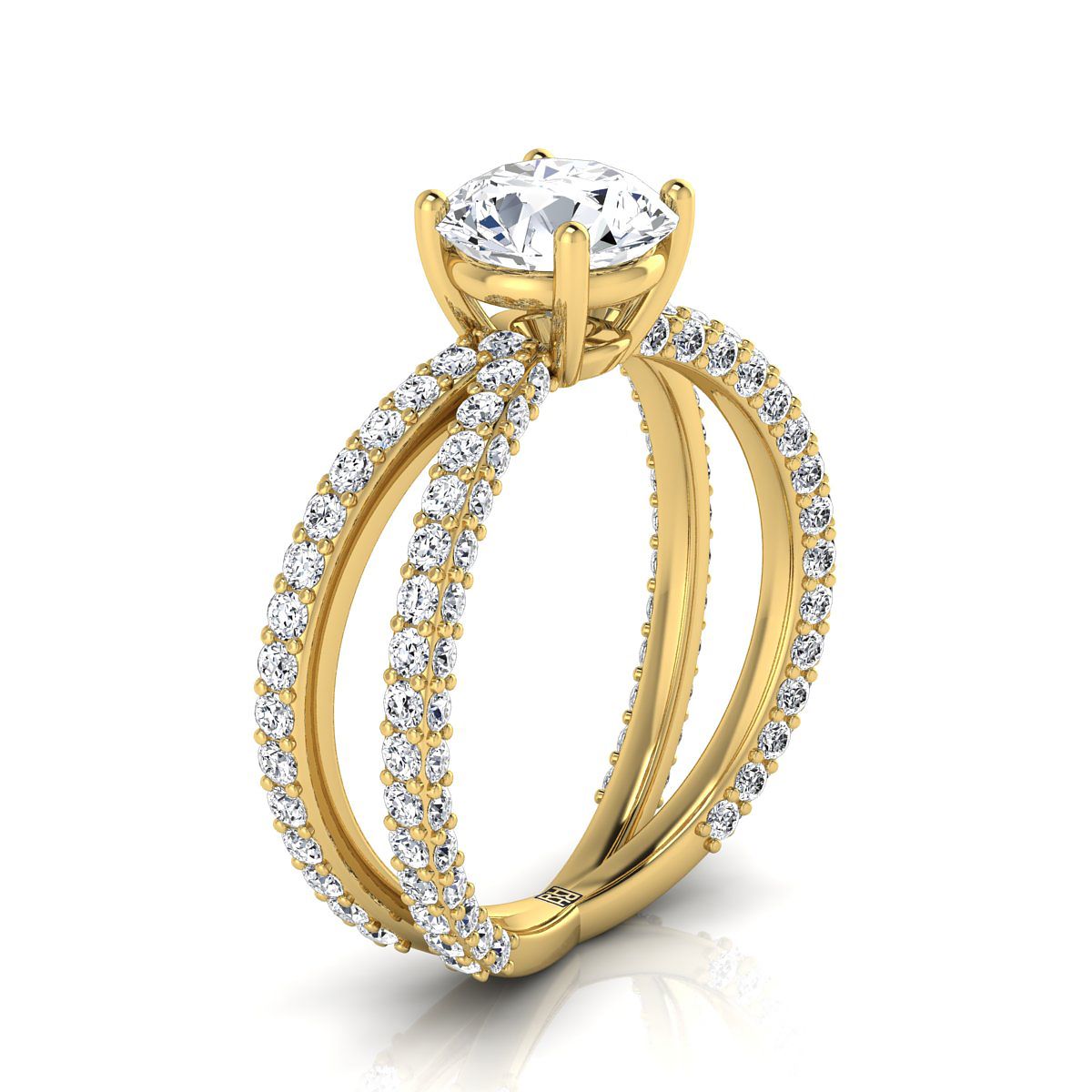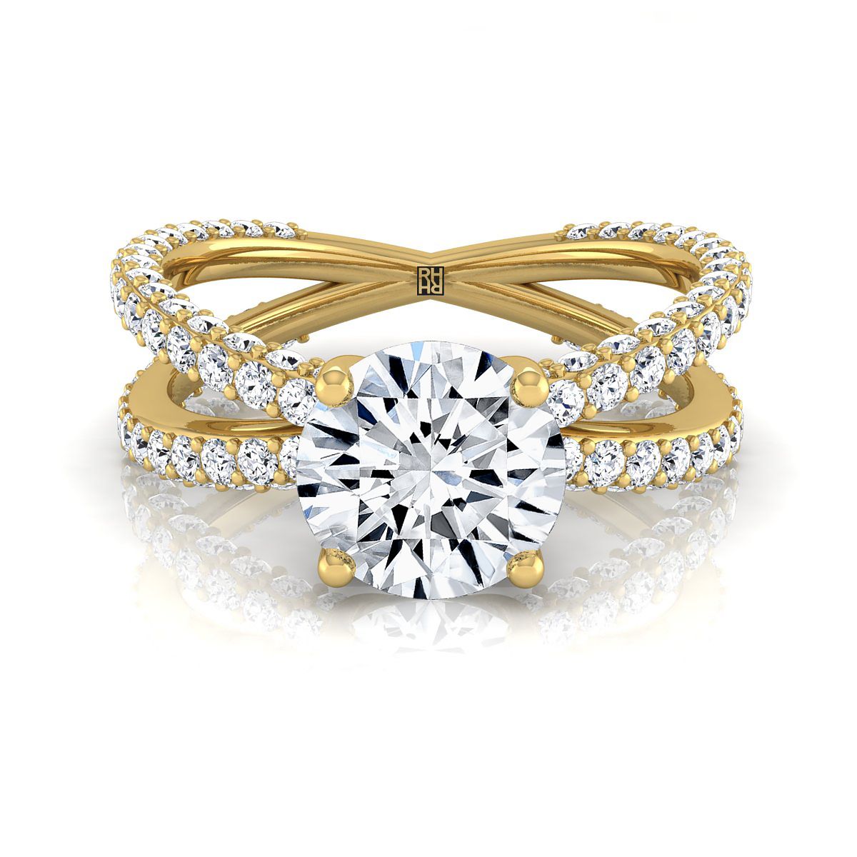 14K Yellow Gold Round Brilliant Open Diamond Pave Criss Cross Engagement Ring -1-1/3ctw