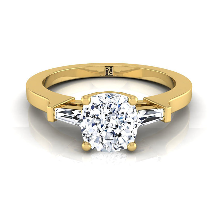18K Yellow Gold Cushion Diamond Tapered Baguette Accent Engagement Ring -1/4ctw
