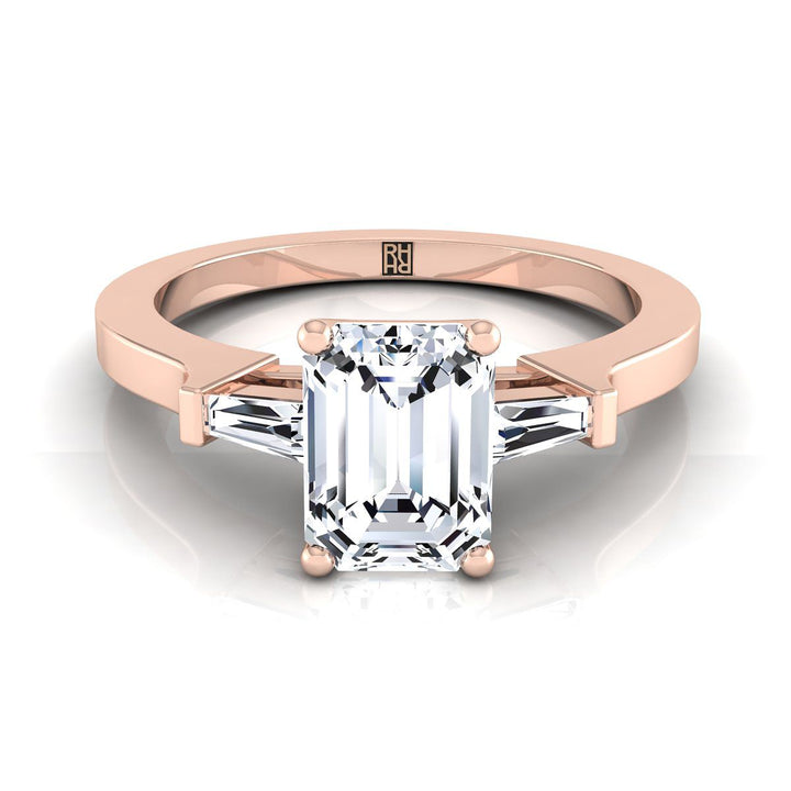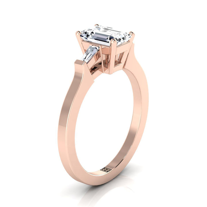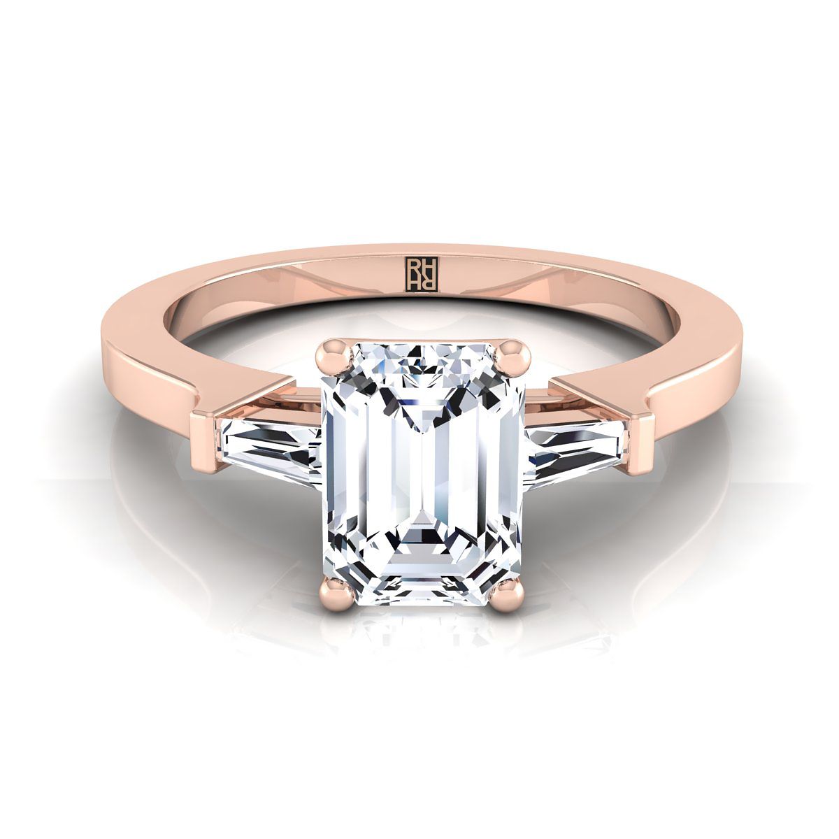 14K Rose Gold Emerald Cut Diamond Tapered Baguette Accent Engagement Ring -1/4ctw