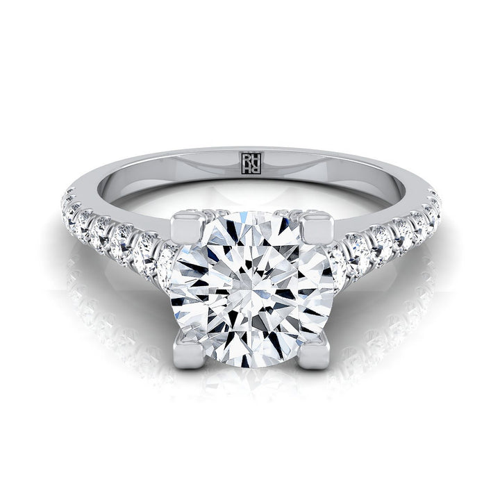 18K White Gold Round Brilliant Diamond Pave Prong Linear Engagement Ring -1/2ctw
