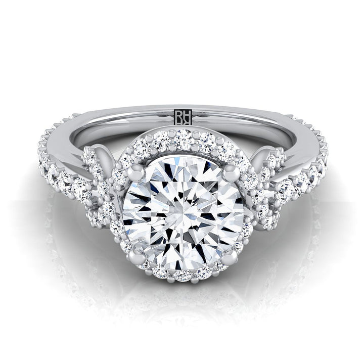 Platinum Round Brilliant Diamond French Pave Graceful Love Knot Engagement Ring -5/8ctw