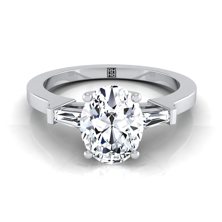 18K White Gold Oval Diamond Tapered Baguette Accent Engagement Ring -1/4ctw