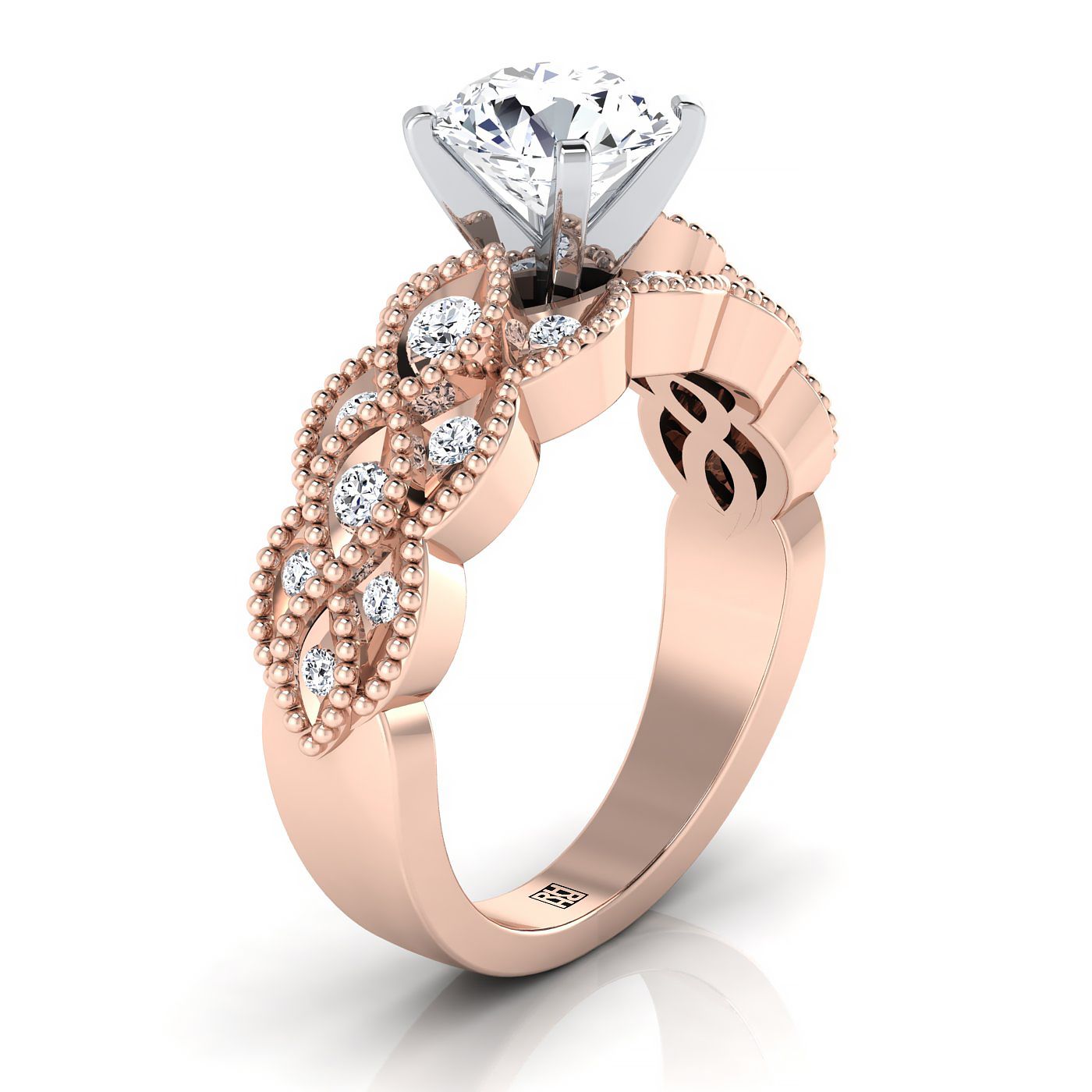 Gorgeous Diamond Engagement Ring With Braided Shank Features Pave-set Round Brilliant Cuts (h/i-vs 0.25ctw) In A 14k Rose Gold Setting