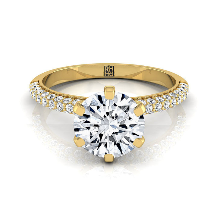 18K Yellow Gold Round Brilliant Diamond Three Row French Pave Simple Engagement Ring -1/3ctw
