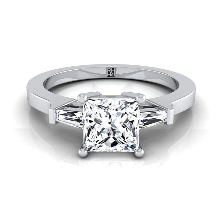 Platinum Princess Cut Diamond Tapered Baguette Accent Engagement Ring -1/4ctw