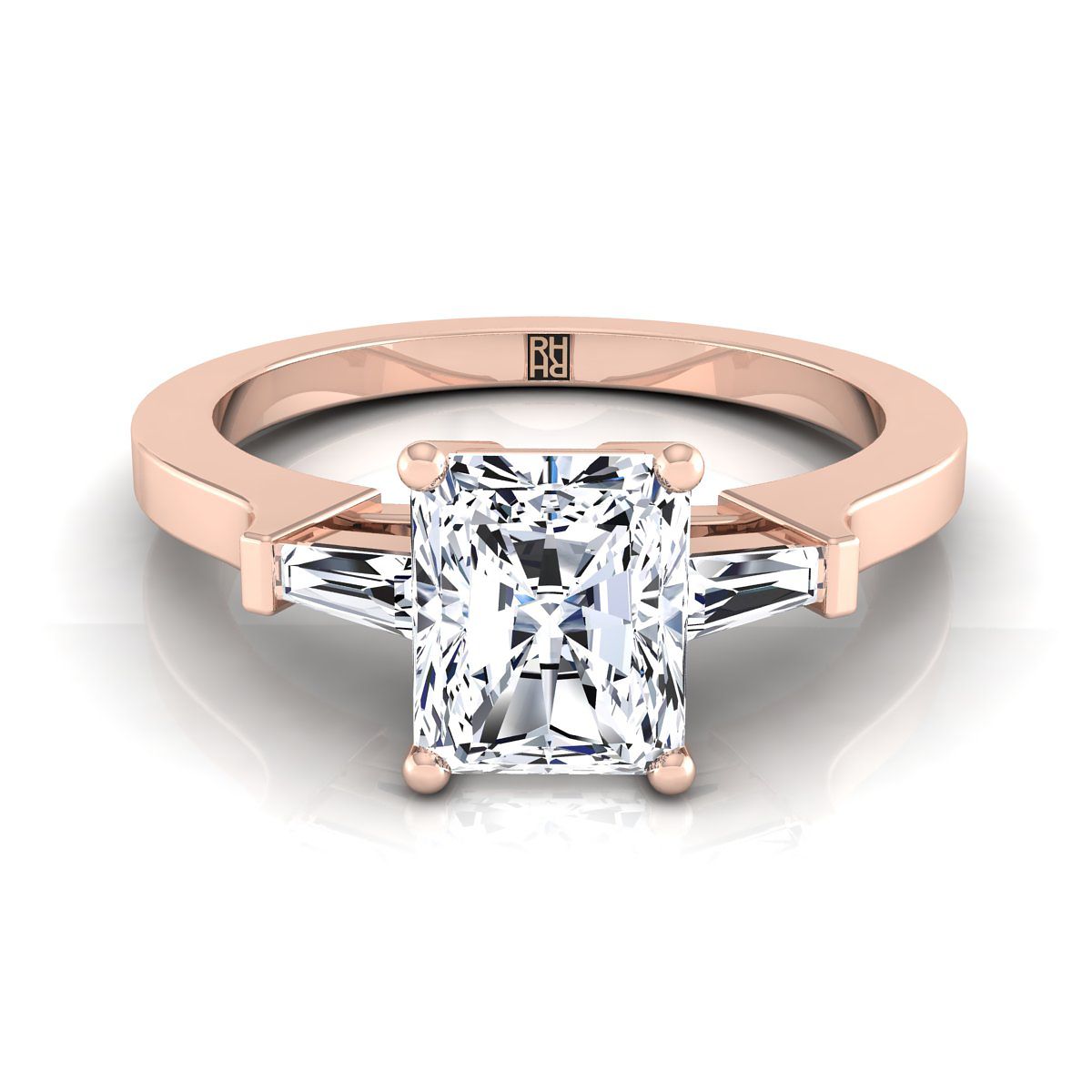 Understated Elegance, This Diamond Engagement Ring Setting Showcases A Radiant Cut Center And Tapered Baguettes (h-i/vs 0.25ctw) Exquisitely Channel Set In 14k Rose Gold
