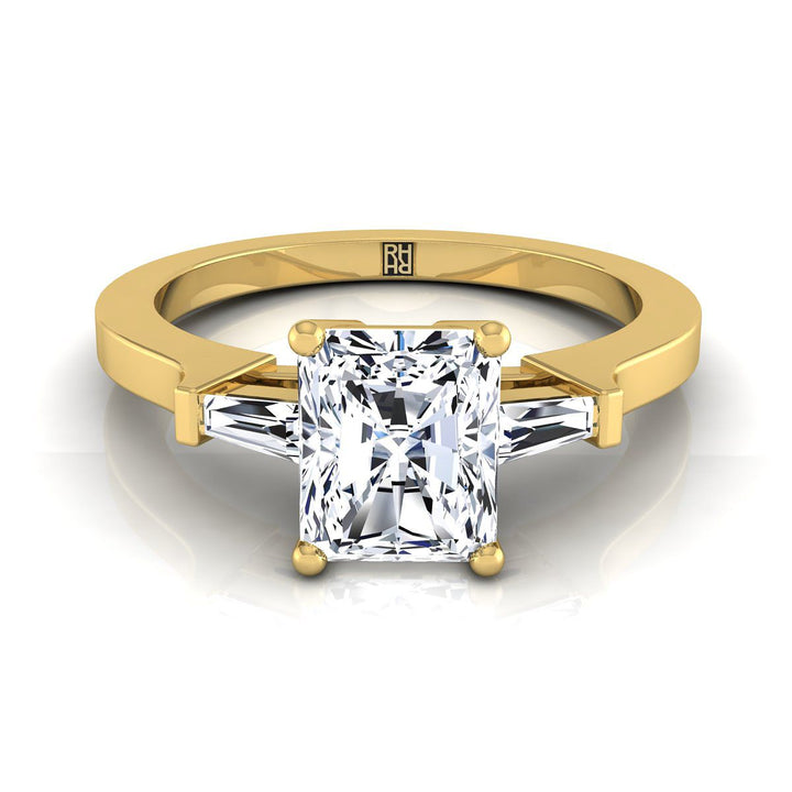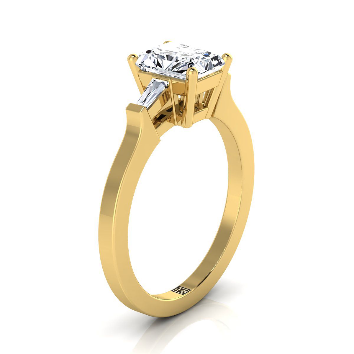 18K Yellow Gold Radiant Cut Center Diamond Tapered Baguette Accent Engagement Ring -1/4ctw
