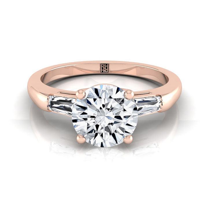 14K Rose Gold Round Brilliant Diamond Three Stone Tapered Baguette Engagement Ring -1/5ctw