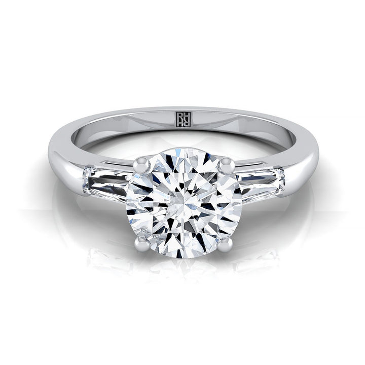 18K White Gold Round Brilliant Diamond Three Stone Tapered Baguette Engagement Ring -1/5ctw