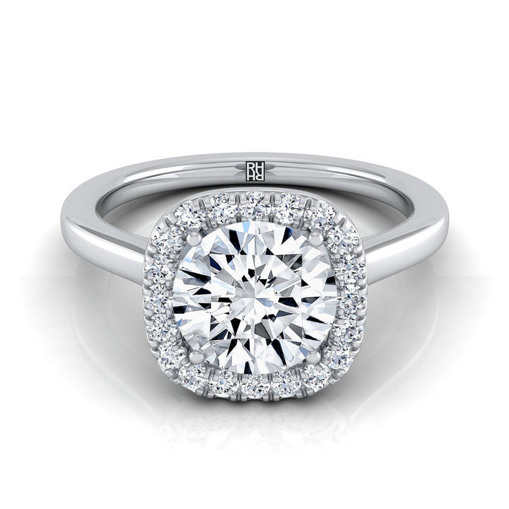 14K White Gold Round Brilliant Diamond Modern Halo French Pave Engagement Ring -1/6ctw
