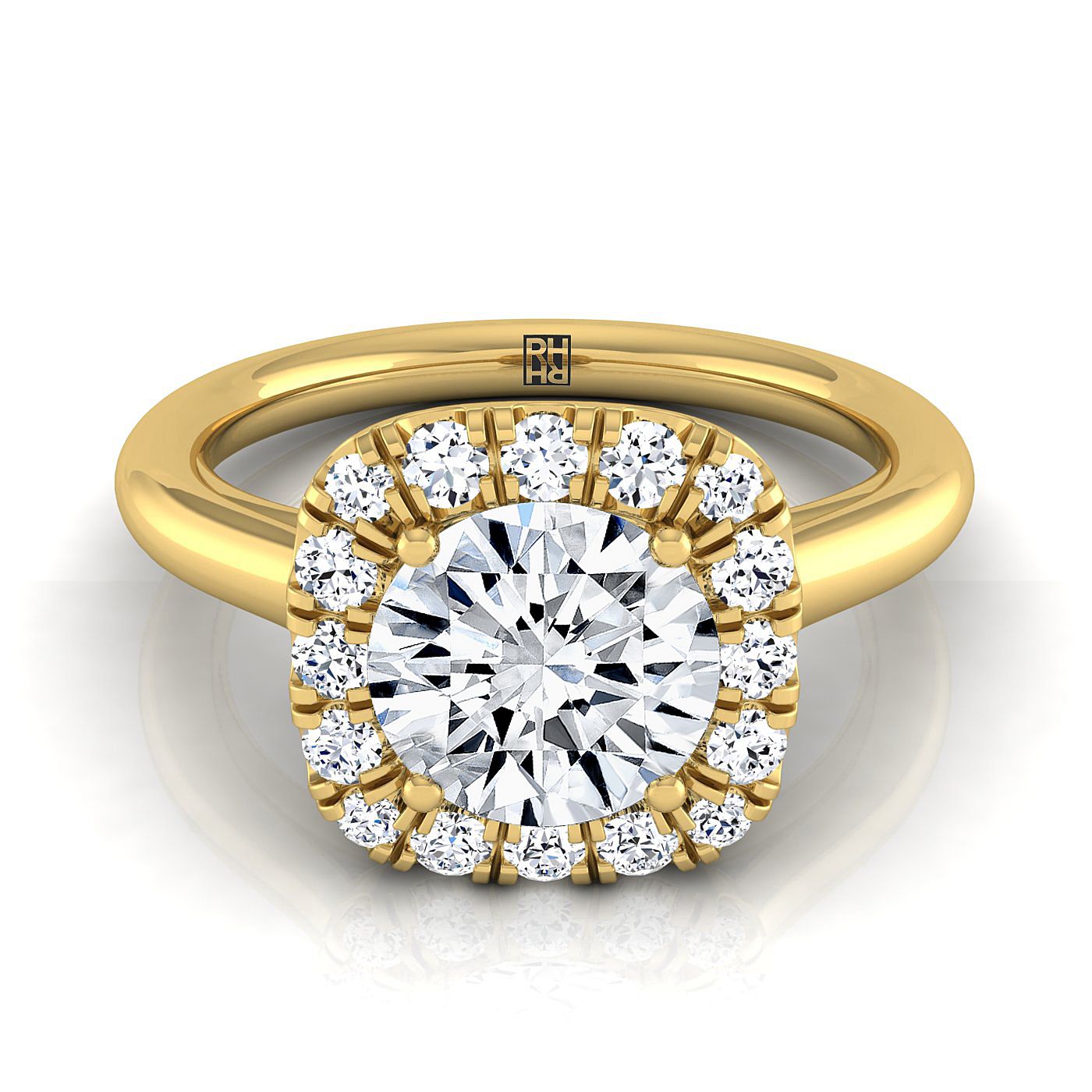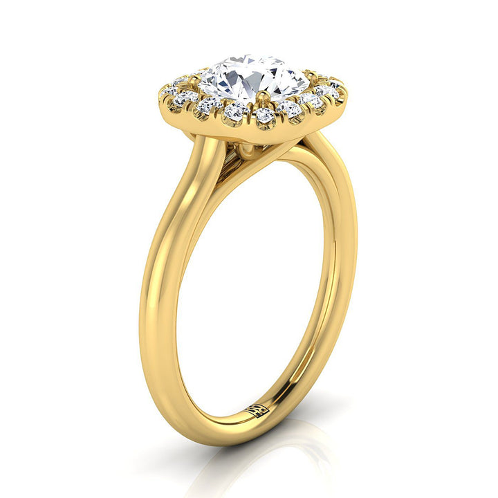 18K Yellow Gold Round Brilliant Diamond Sophisticated and Simple Halo on a High Polished Engagement Ring -1/4ctw