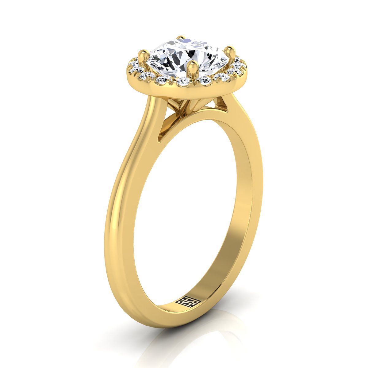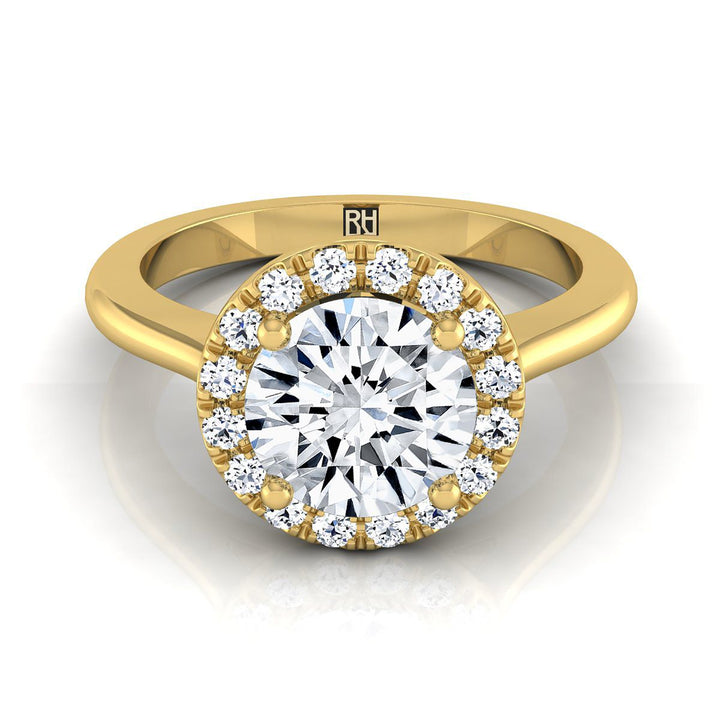 18K Yellow Gold Round Brilliant Diamond Classic Halo French Pave Engagement Ring -1/4ctw