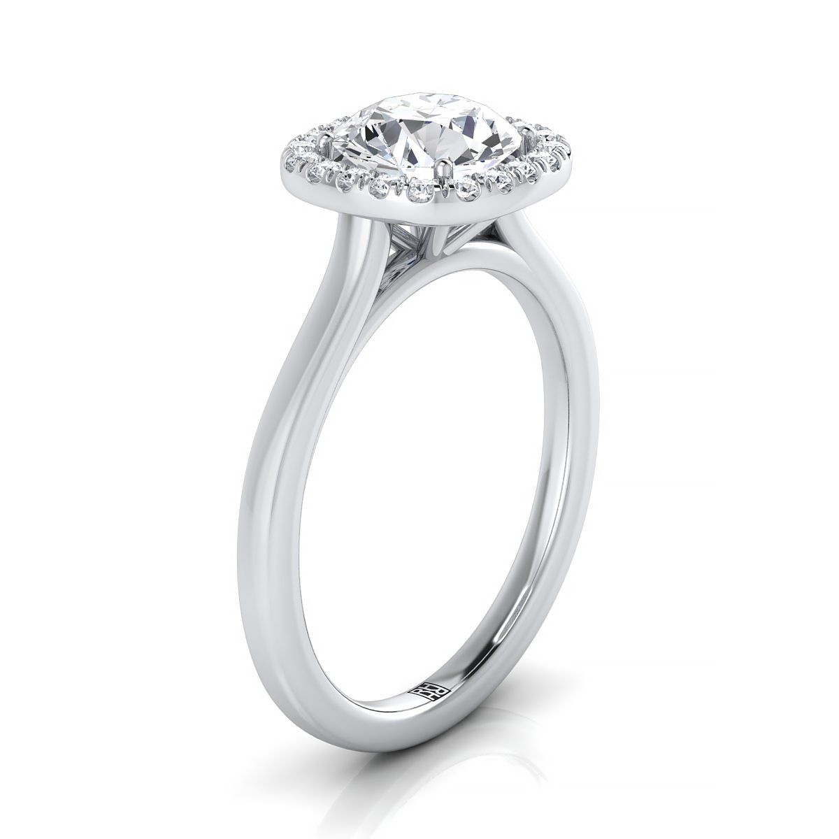 Platinum Round Brilliant Diamond Modern Halo French Pave Engagement Ring -1/6ctw