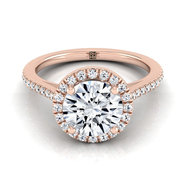 14K Rose Gold Round Brilliant Classic French Pave Halo and Linear Engagement Ring -1/4ctw