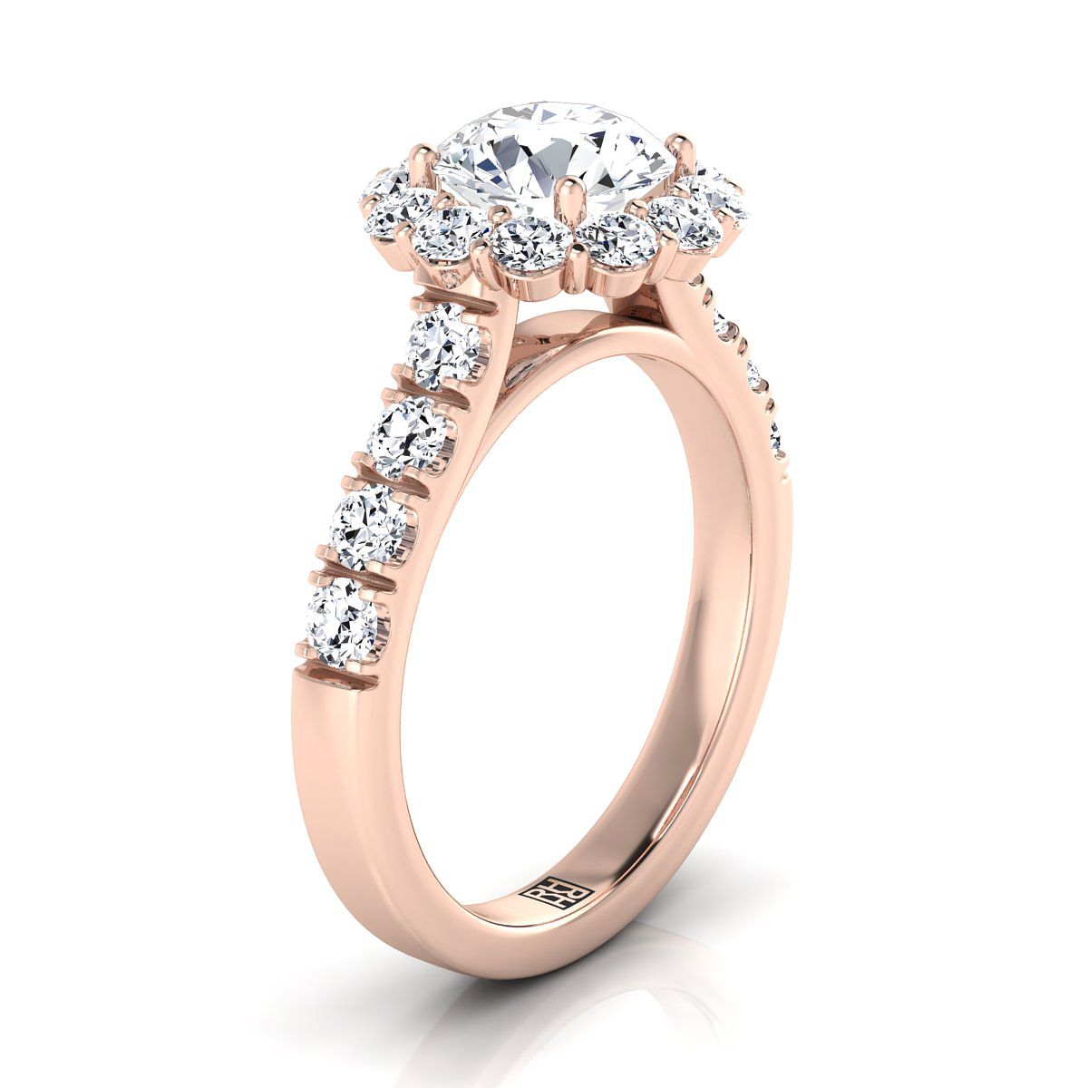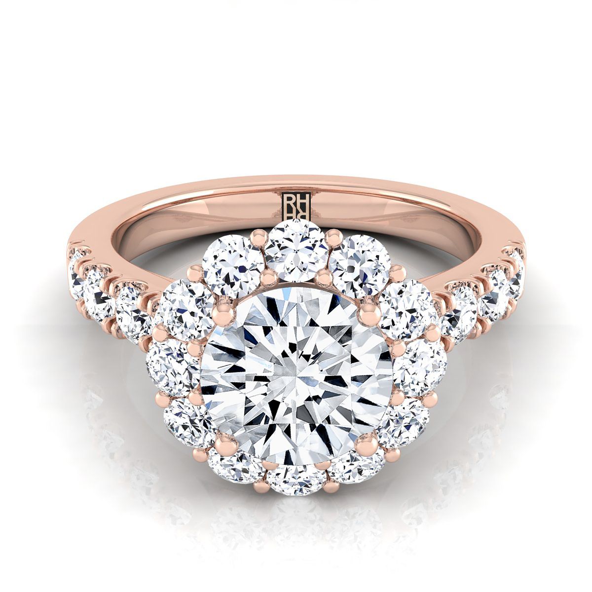 14K Rose Gold Round Brilliant Diamond Luxe Style French Pave Halo Engagement Ring -1-1/10ctw