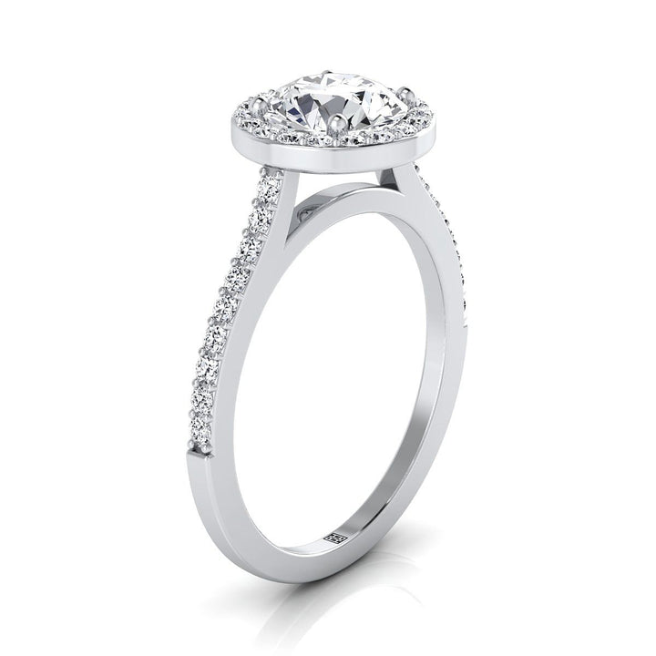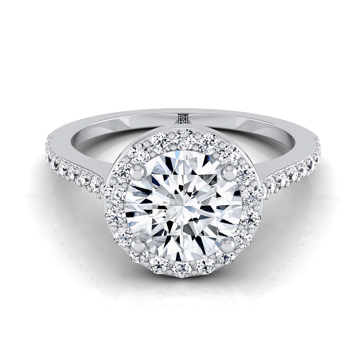 18K White Gold Round Brilliant Classic French Pave Diamond Halo and Linear Engagement Ring -1/3ctw