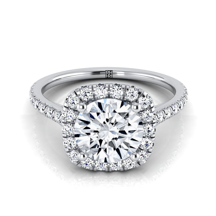 An Elegant Statement Of Style, This Halo Engagement Ring With Diamond Pave Shank Showcases Brilliant Cut Diamonds (h-i/vs 0.33ctw) Beautifully Set In A Classic 18k White Gold Setting.