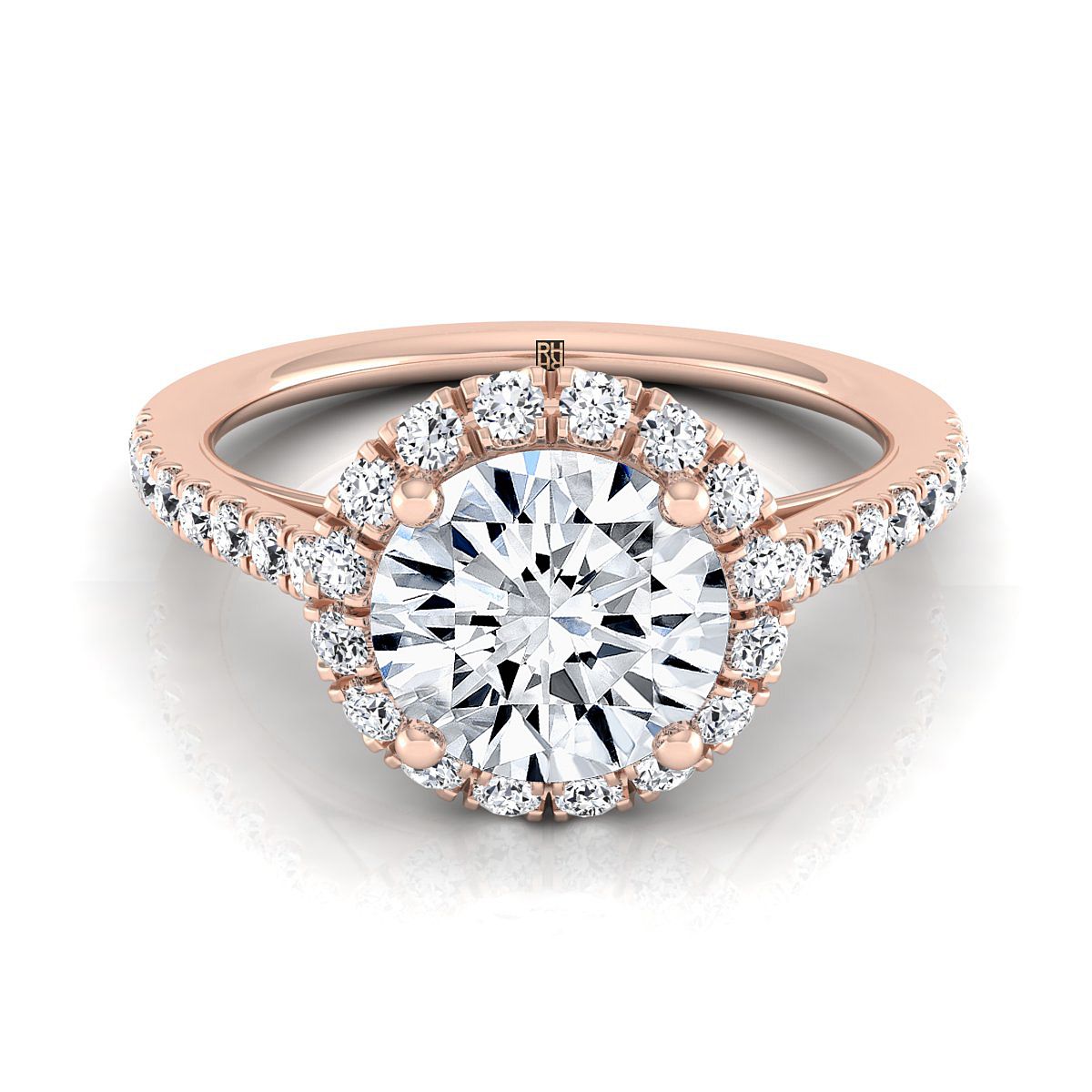 14K Rose Gold Round Brilliant Diamond Petite Halo French Pave Engagement Ring -3/8ctw
