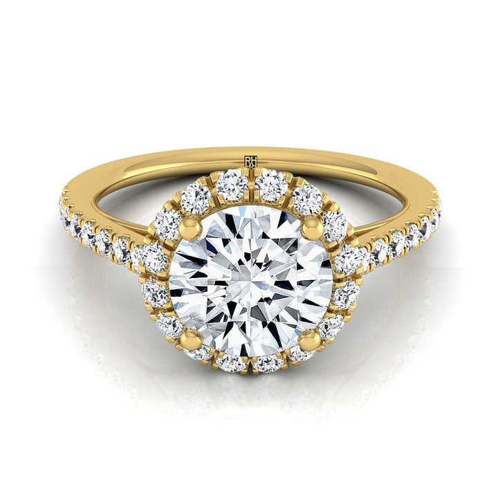 14K Yellow Gold Round Brilliant Diamond Petite Halo French Pave Engagement Ring -3/8ctw