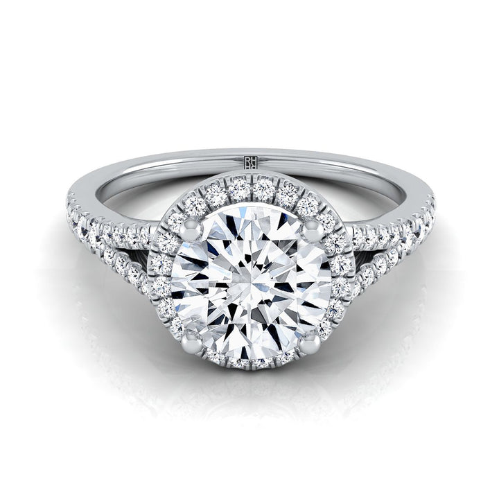 14K White Gold Round Brilliant French Pave Split Shank Halo Engagement Ring -1/4ctw